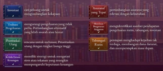 Sekarang, cobalah mengidentifikasi perilaku keuangan mana saja yang termasuk kompetensi cerdas literasi keuangan, cerdas perencanaan, cerdas menabung dan cerdas pengeluaran?